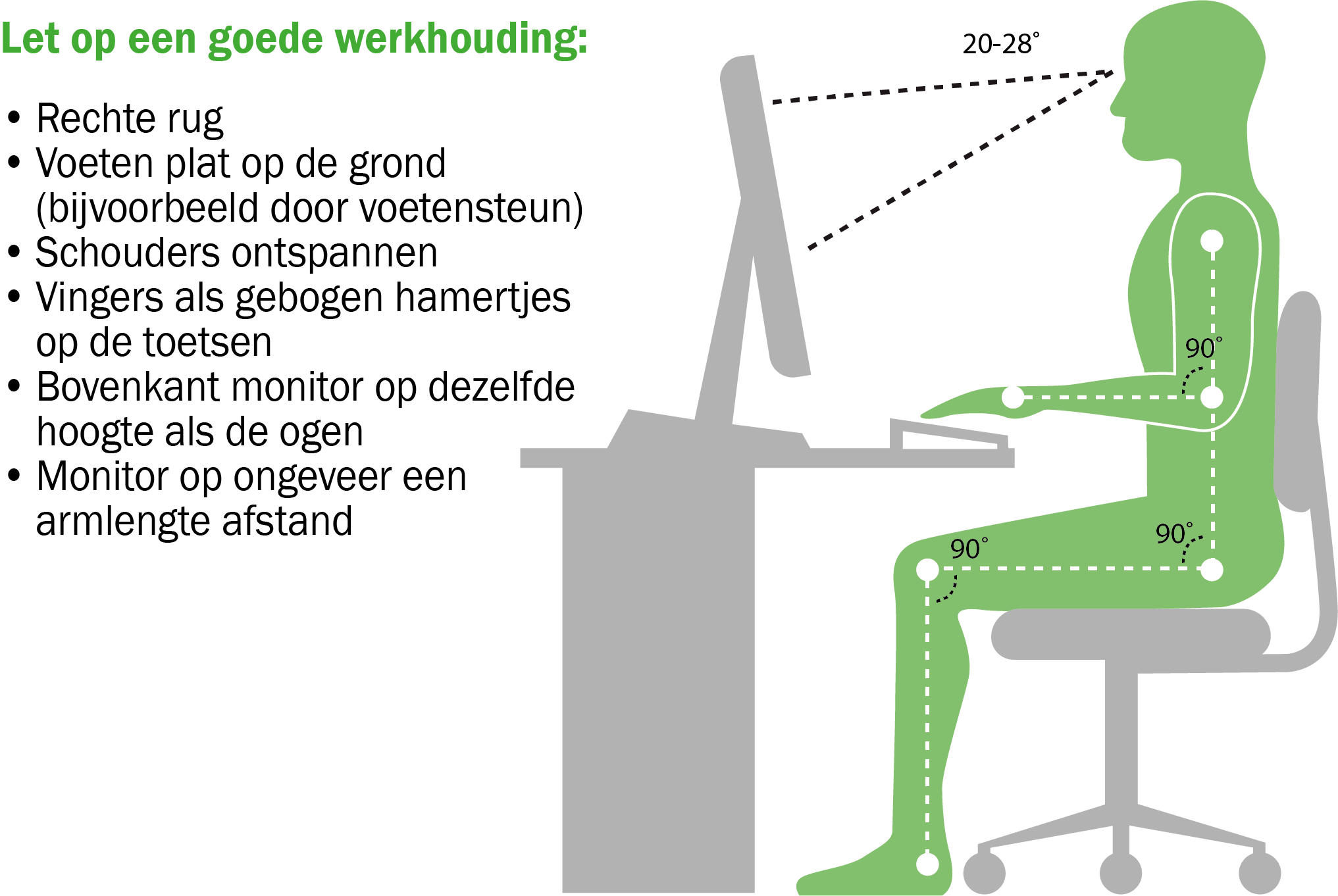 - Het beeldscherm staat gemiddeld een armlengte van u af.